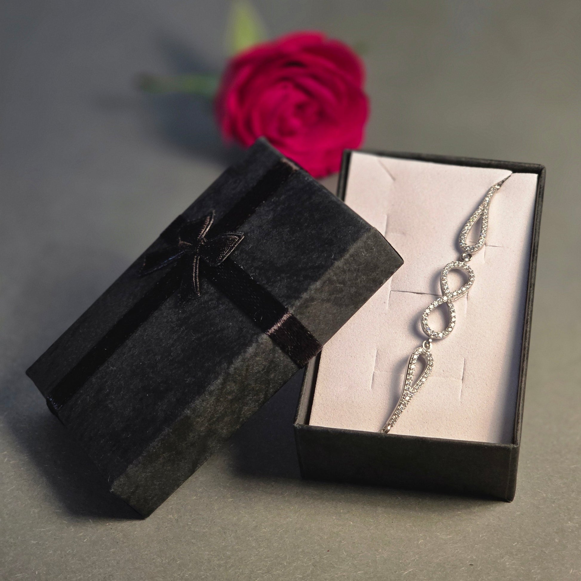 Dieses elegante Armband repräsentiert das Symbol der Liebe und Unendlichkeit in ewiger Umarmung. Das Unendlichkeitssymbol mit einer Fülle weißer funkelnder Zirkonia Edelsteine sind das perfekte Duo für einen wirklich romantischen Look.