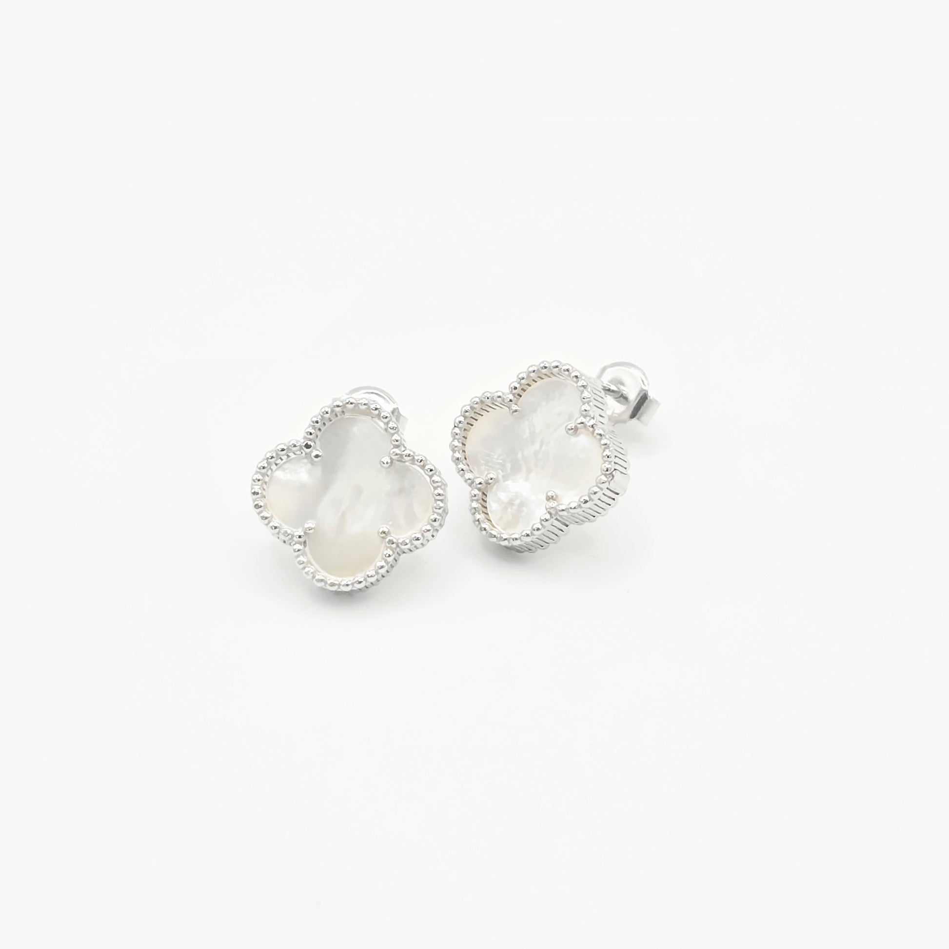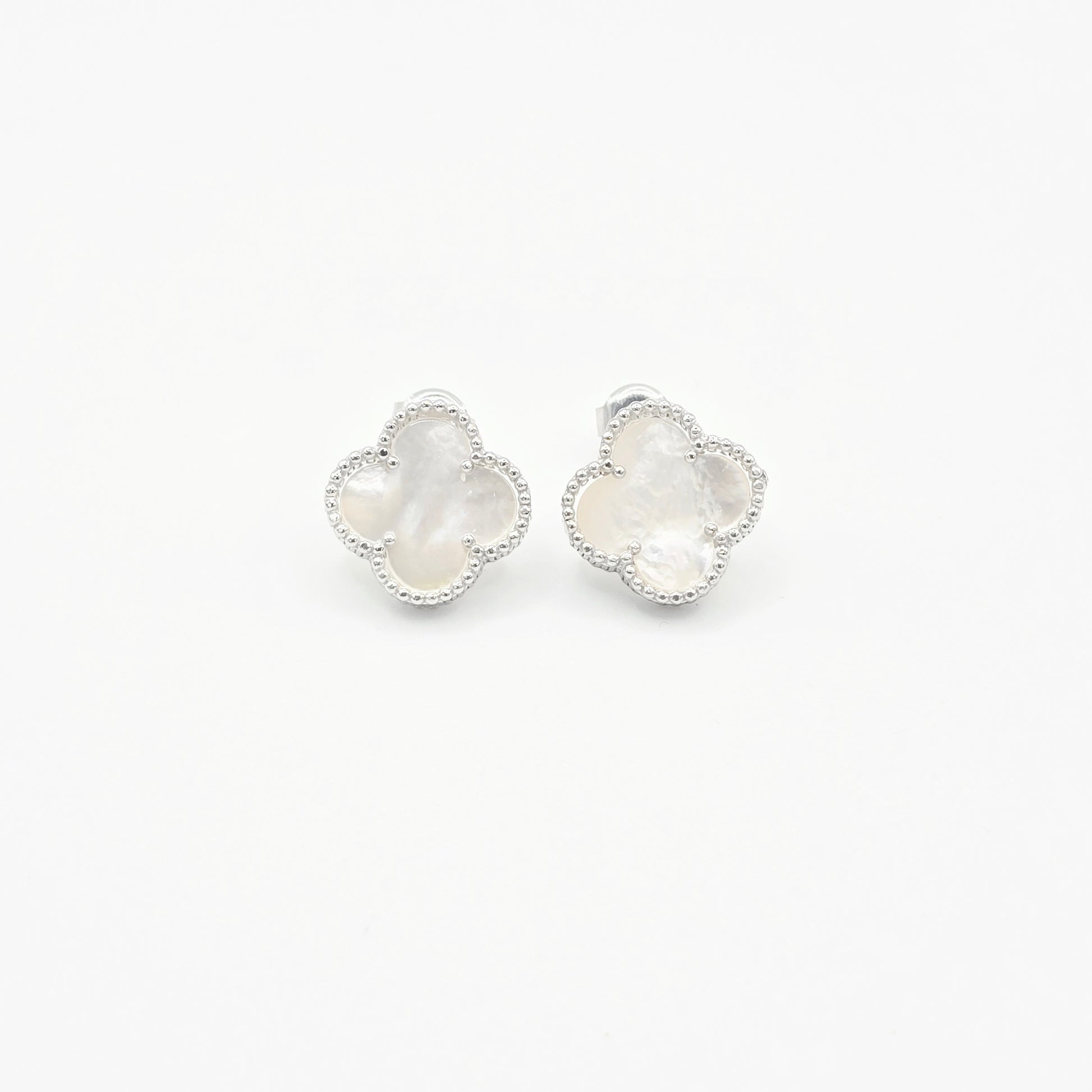 Ohrstecker Klee mit weißem Perlmutt aus 925 Silber