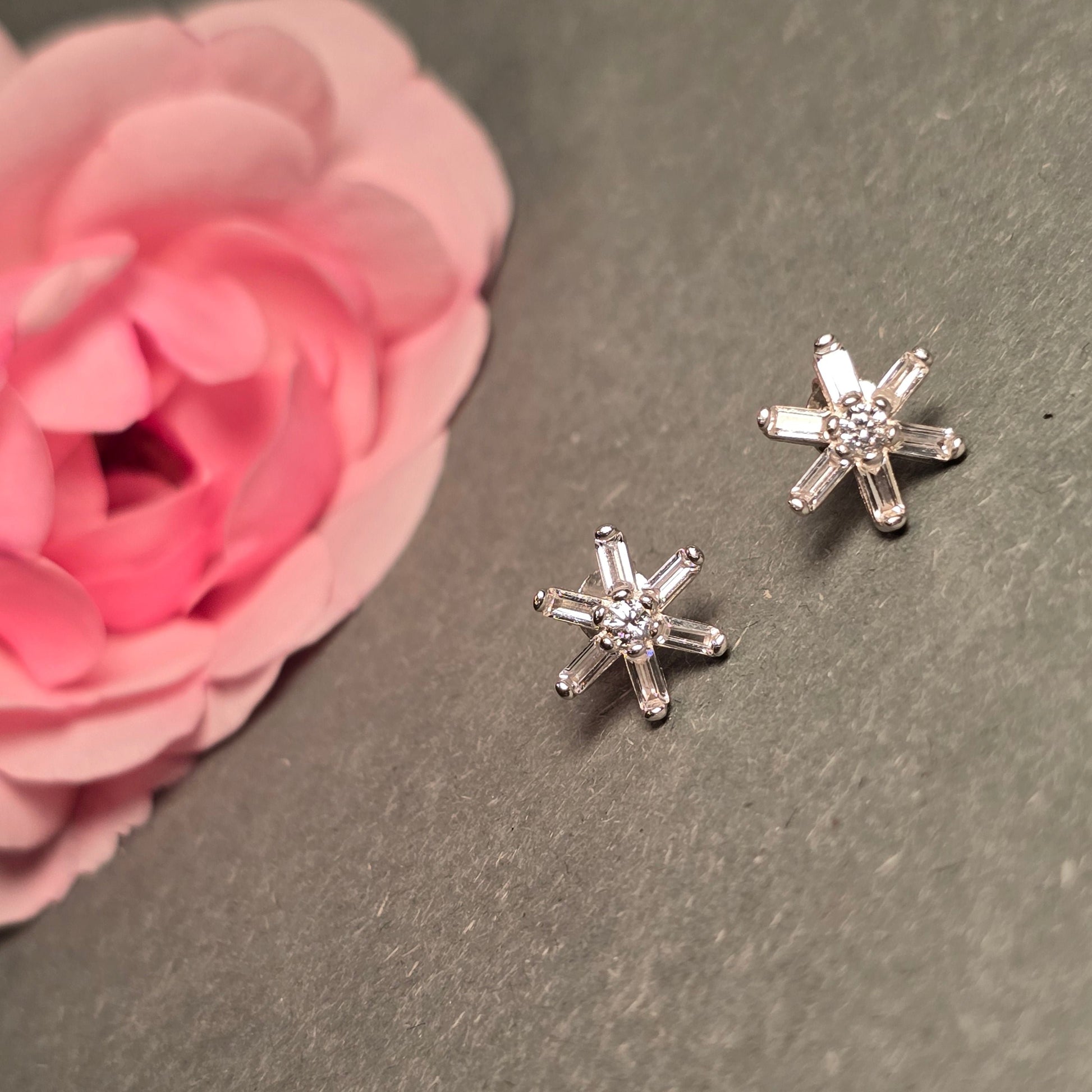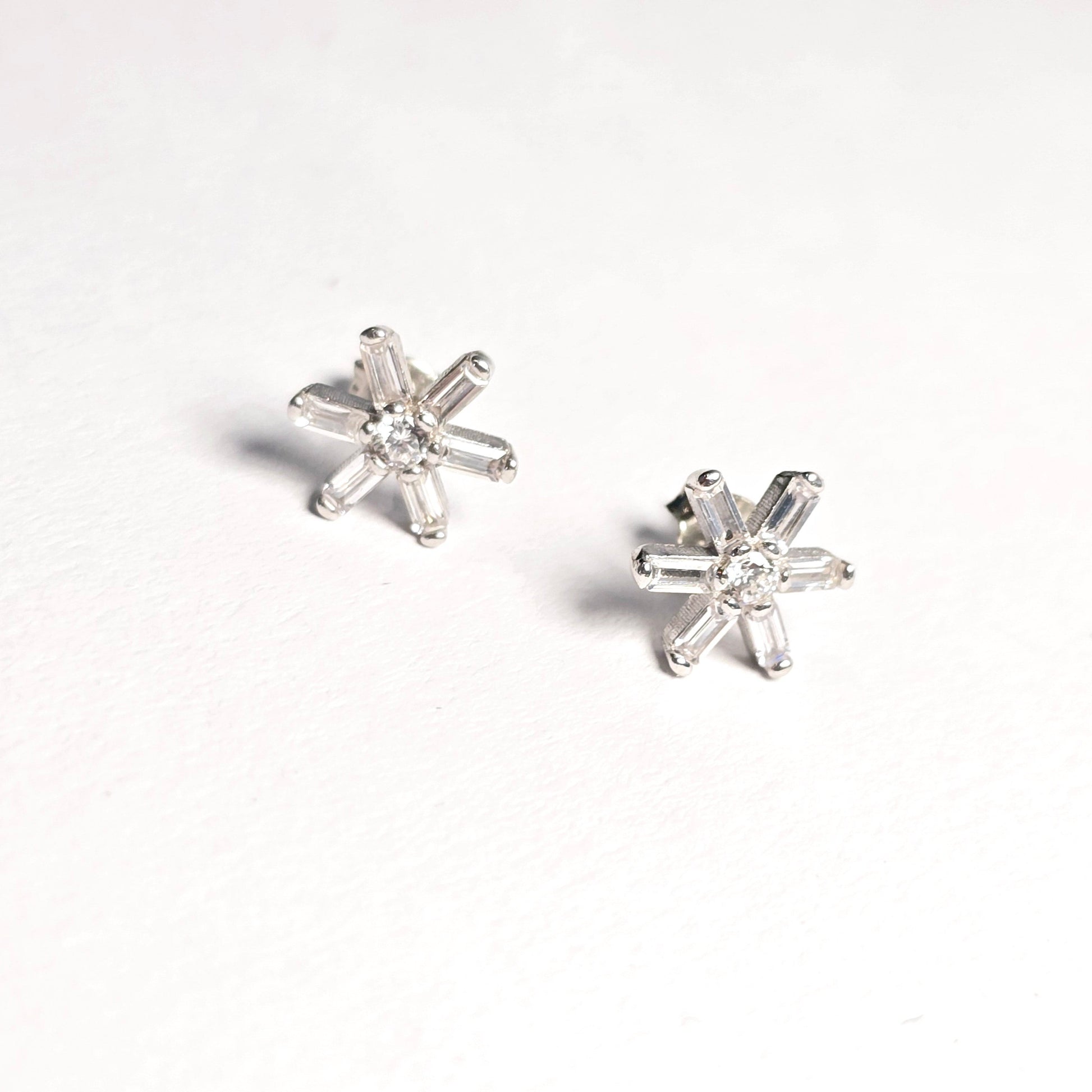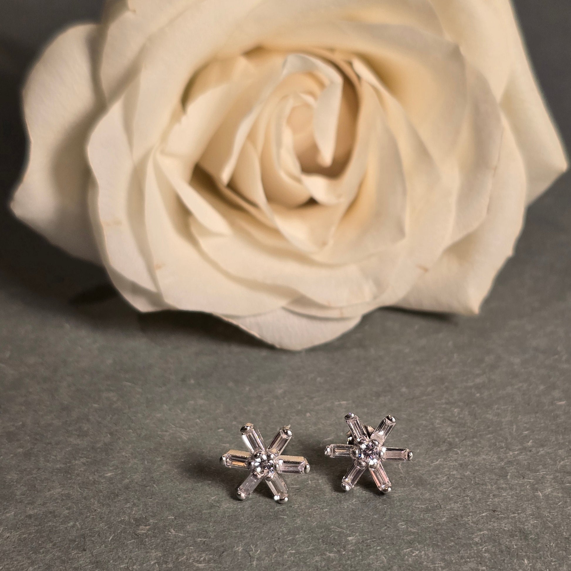 - Ohrstecker in Blüten-Form mit weißen Zirkonia Steinen